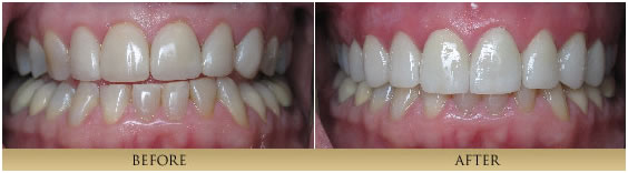 Through artistry and laboratory technique, we achieve outstanding and beautiful results restoring teeth with all- Porcelain Veneers and Porcelain Crowns. The cutting edge technology of adhesive bonding dentistry makes these restorations second to none. Many of the before and after cases you see here utilize this type of restoration-note their lifelike vitality. By removing unhealthy or cracked tooth structure and replacing it with natural looking porcelain, which fits the tooth like a thimble or jacket, we protect the remaining tooth structure and achieve a beautiful result.